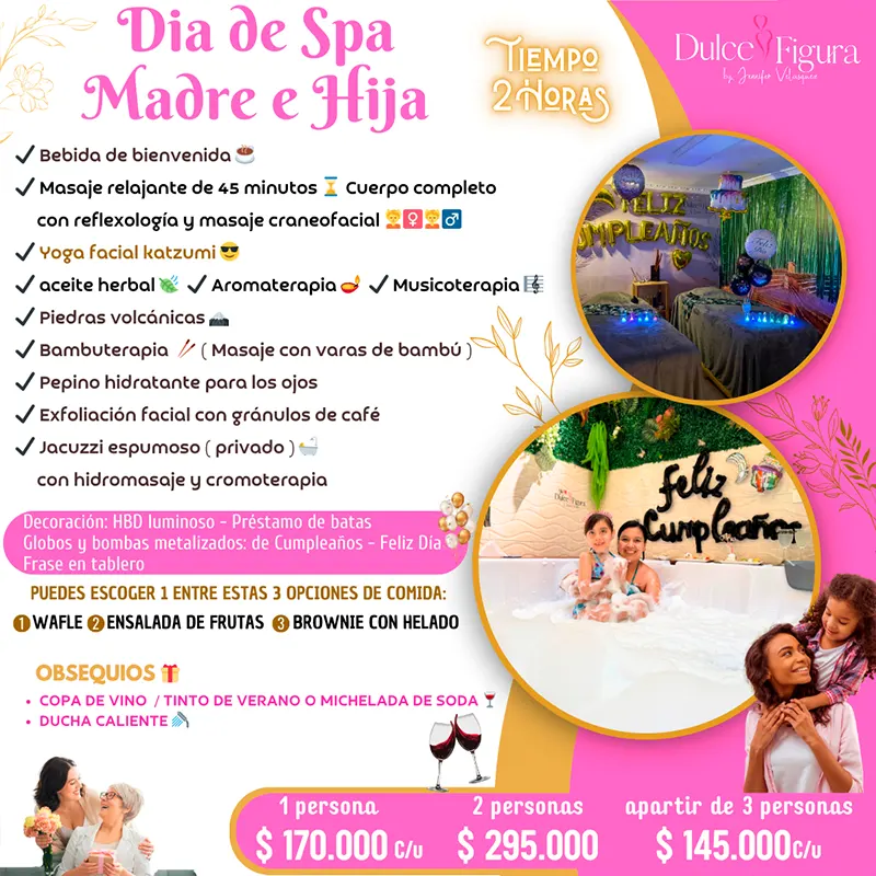 Esta maravillosa experiencia es ideal para celebrar múltiples fechas especiales como: spa para quinceañeras, spa para mamá, spa día de la mujer, spa para papá y mucho más.