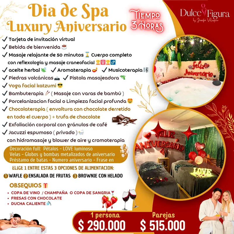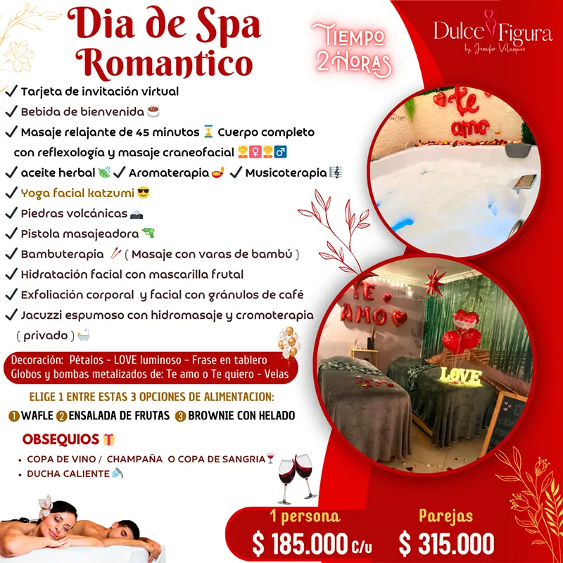 Cada uno de los planes en pareja han sido diseñados para aprovechar al máximo su momento especial juntos. Con nosotros tu escapada íntima de romance, relajación y diversión, estará llena de recuerdos especiales que valorarán siempre. Un disfrute de experiencias extraordinarias para celebrar el amor con toques extra especiales, que solo encontrarás en Dulce Figura.